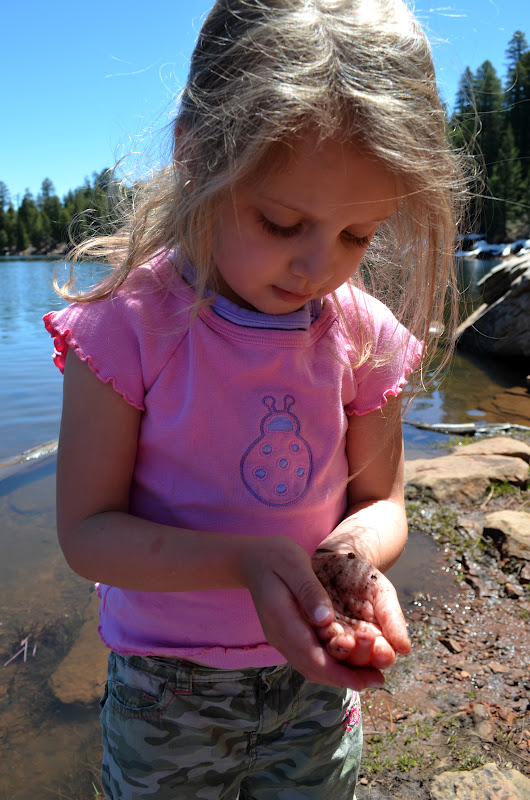 We camped at the rim and the view was beautiful. We talked about God's creation and how it displays His awesomeness. We went down to the lake and Evelyn tried catching fish with her net but then settled on a little lady bug she found instead. She tried bringing it home but thankfully for the lady bug it escaped. Whenever we visit the lake we get an ice cream at the camp store before heading back {which is always a high point}.